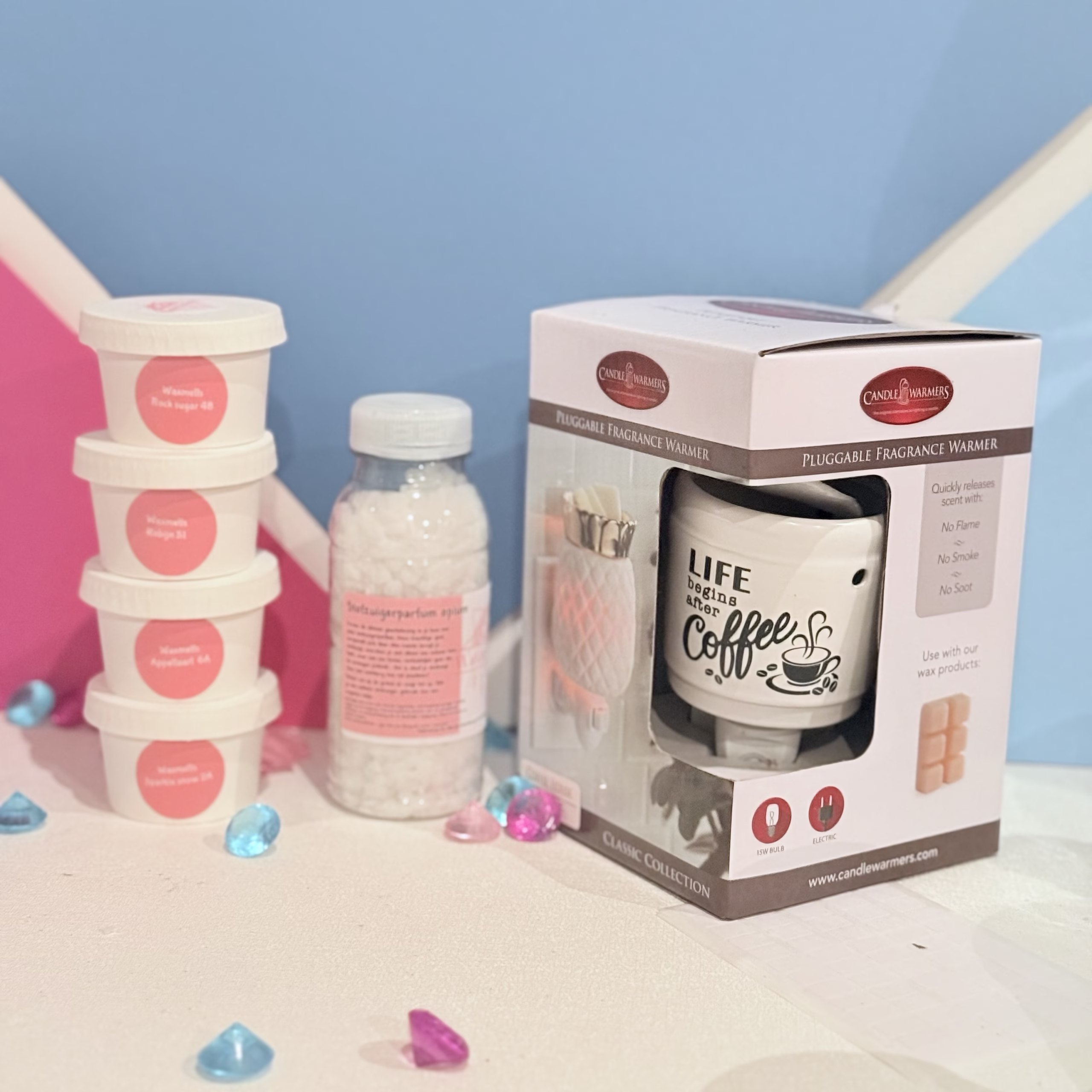 elektrische brander ( de brander kies ik), 4 potjes waxmelts, Stofzuigerkorrels