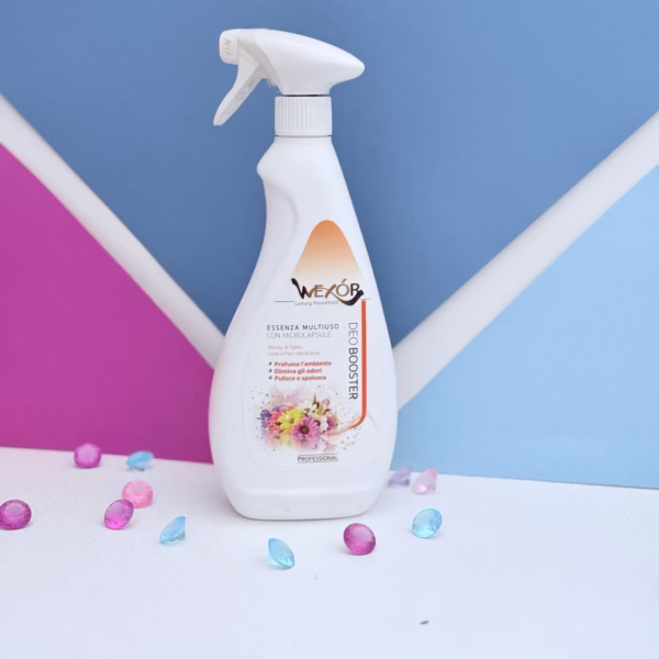 Gebruik de Deobooster als roomspray voor directe geurverfrissing of meng hem met water om te gebruiken als geurversterker tijdens het schoonmaken. In combinatie met de Wexór vloer- en allesreiniger Fiori Brasil creëer je een geurige, tropische sfeer die lang aanhoudt.