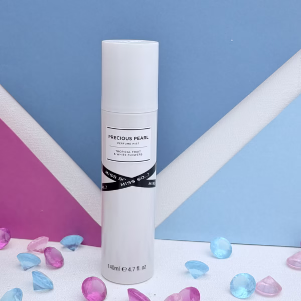 Miss So… Precious Pearl Perfume Mist. Ervaar een frisse, elegante geur met Miss So… Spray op de huid of kleding voor een frisse, zachte geur die lang blijft hangen. Deze verfijnde body mist combineert tropisch fruit met zachte witte bloemen, wat zorgt voor een lichte, vrouwelijke en frisse geurbeleving.